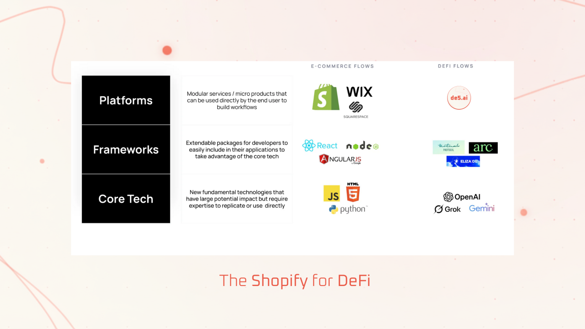 Internally, we tend to use an analogy to help explain the vision and usefulness of what we are building. We call ourselves the Shopify for DeFi workflows!